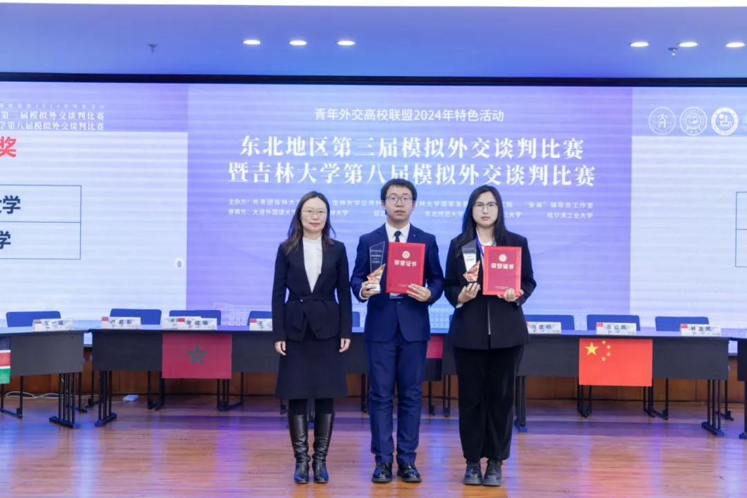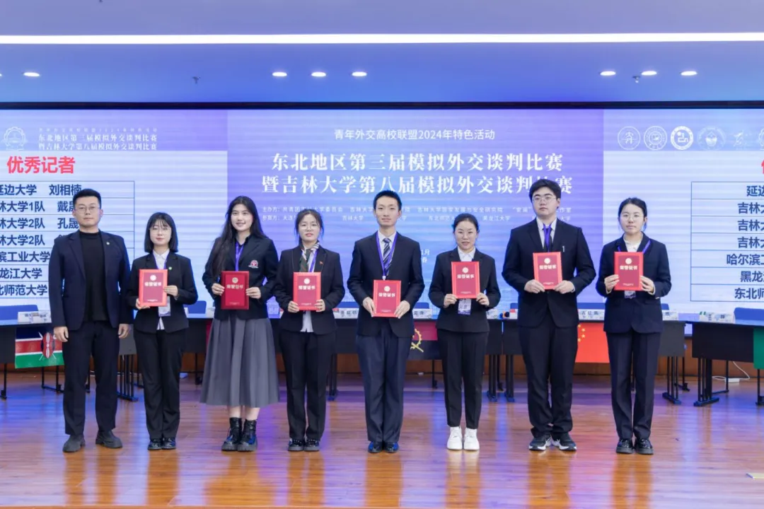 本次比赛采用各高校评审老师的集体打分计票,吉林大学2队、哈尔滨工业大学代表队获得杰出贡献奖,东北师范大学代表队、黑龙江大学代表队获得优秀团队奖,吉林大学1队、延边大学代表队、大连外国语大学代表队获得荣誉团队奖。同时,宋晓瑜等7名选手获得“优秀谈判官”称号、卢君彭等3名选手获得“优秀新闻官”称号、刘相楠等7名选手获得“优秀记者”称号。