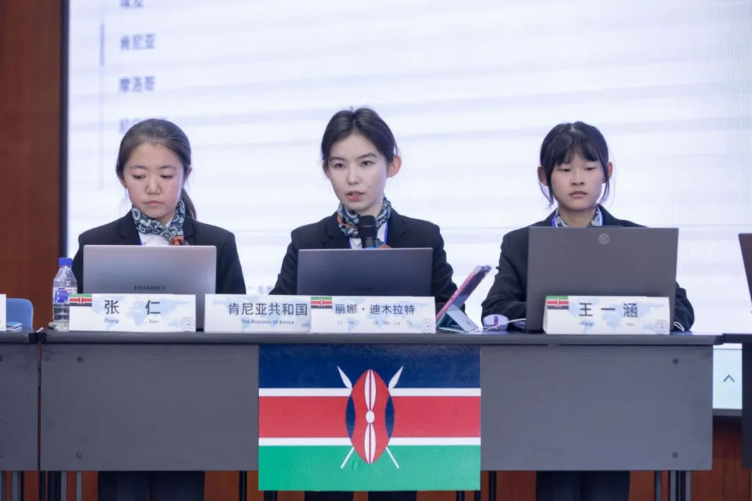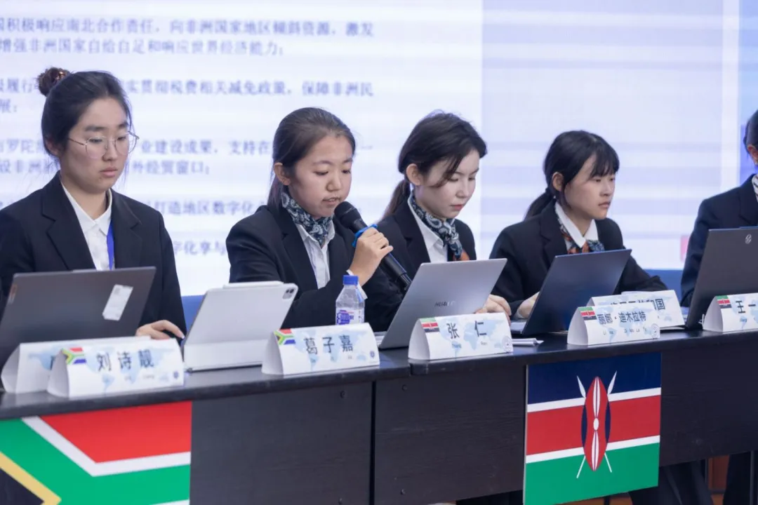 吉林大学文学院2023级本科生王李同学作为参赛学生代表发言。她认为,模拟外交谈判不仅是一场竞技,更是一次学术与思想的碰撞,呼吁各位参赛选手在活动过程中不仅要推动“一带一路”倡议持续迸发活力,还要秉持世界眼光,协调各方利益,达成合作共识,展现出中非合作的潜力。
