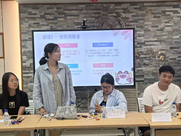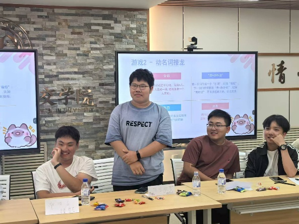 紧接着是“动名词接龙”游戏,这不仅是一场反应力的较量,更是智慧与幽默的碰撞。同学们妙语连珠,机智应对,展现出了优秀的语言表达能力。